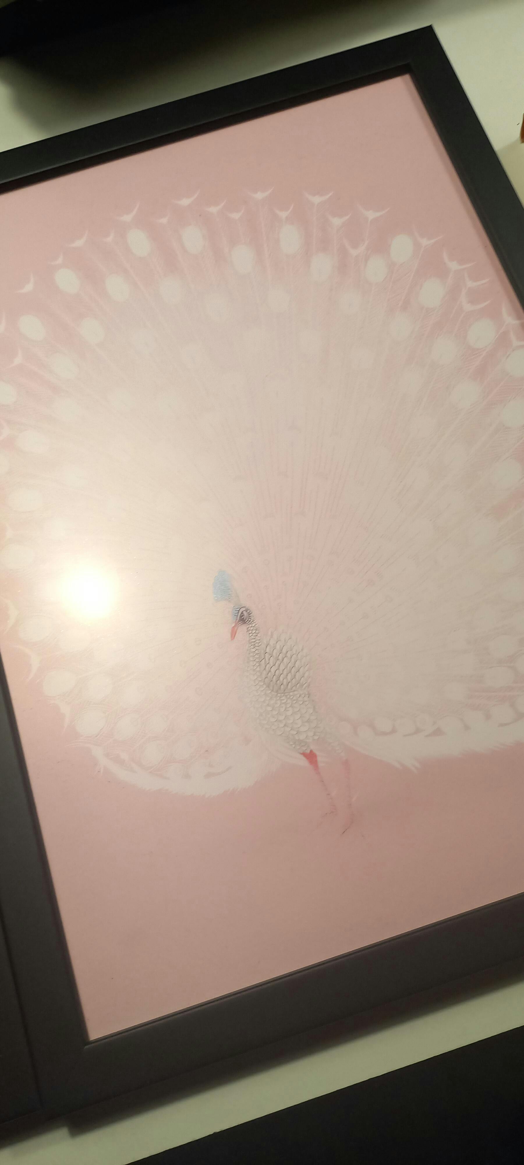 Plakat med lyserød påfugl af Ohara Koson